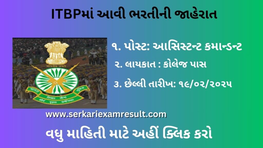 1. Recruitment Organization : Indo-Tibetan Border Police Force (ITBP)